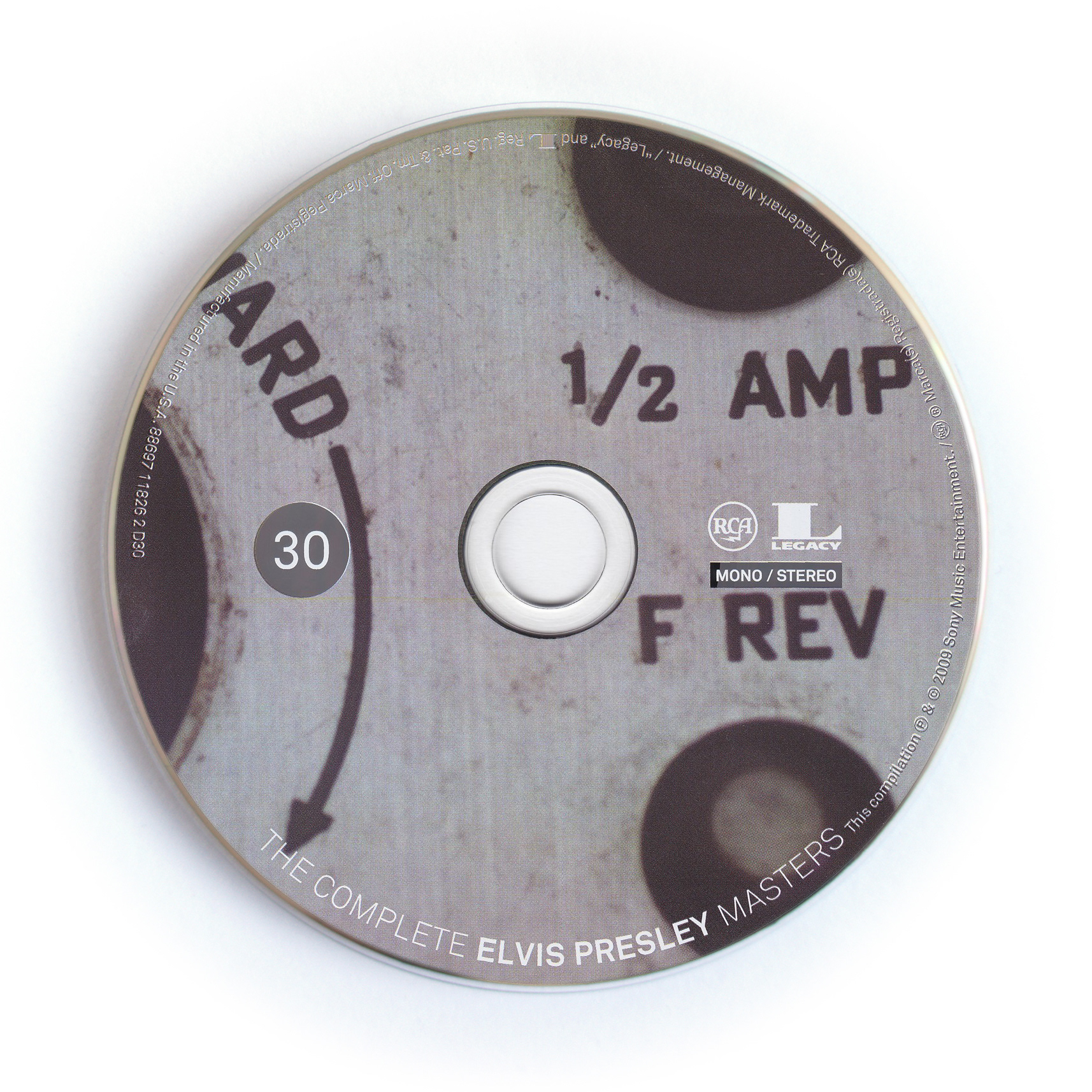 The Complete Elvis Presley Masters is a triumph of musicology: 711 masters in the order in which they were recorded. Special costume color dyed cardboard was used to create the die-cut sleeves to hold 30 individual printed CD’s with images of authentic sound studio equipment. All collected and bound in a unique faux-wood silk screened hardcover bookcase. This set includes every song Elvis recorded for release during his lifetime in a single unique collection, mastered from the original analog master tapes where available using 24-bit technology for greater sonic resolution and dynamics. Each recording has been carefully restored to achieve the best sound reproduction ever without compromising the audio quality of the original master. Also included are 103 rarities: additional masters, alternate takes, session outtakes, demos, rehearsals, live performances and radio recordings. Over 35 hours of music.