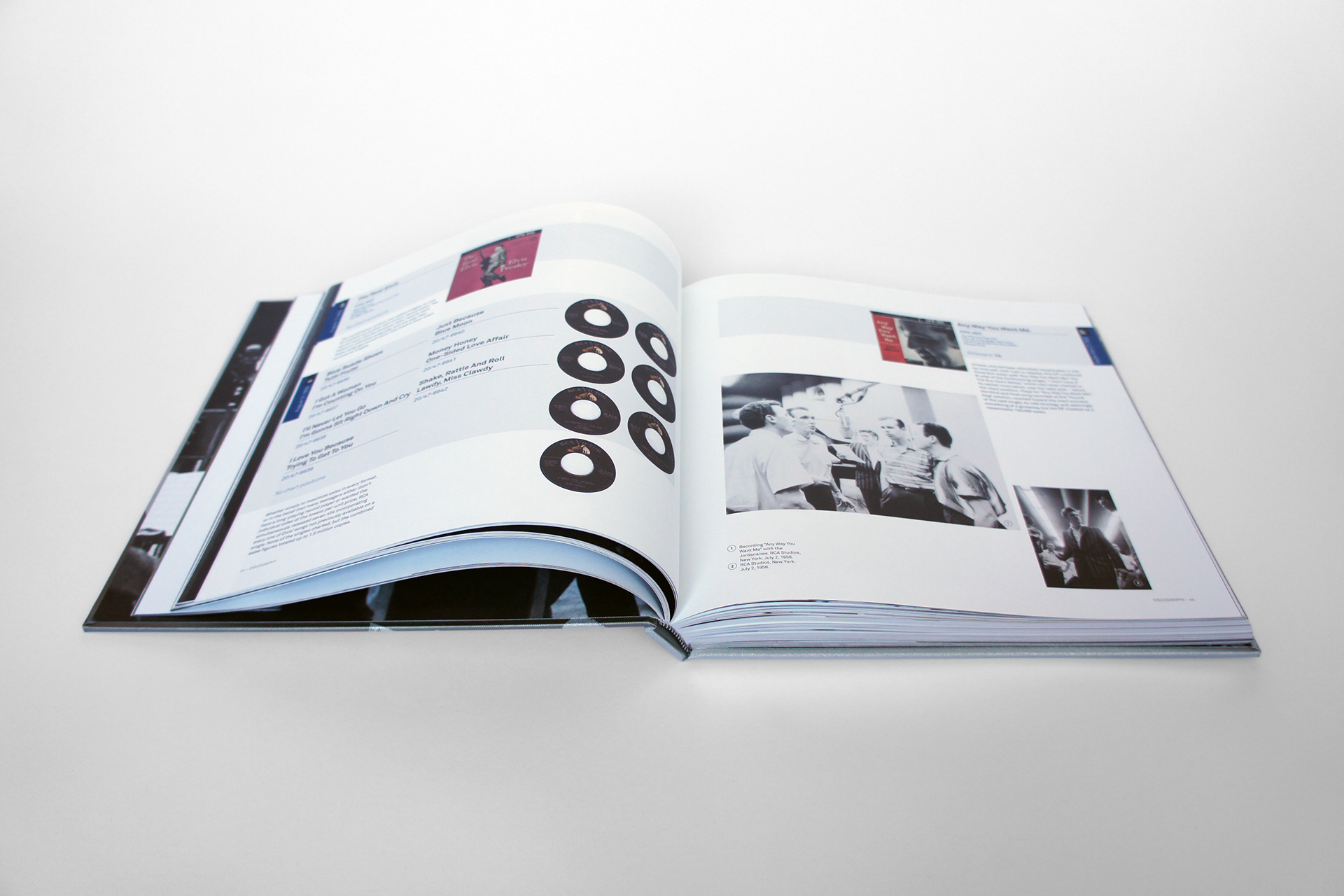 Complementing the music is a hardbound reference book produced exclusively for this collection. A magnificent volume in its own right, and is the ultimate reference work on the music of Elvis Presley. The discography was painstakingly researched and organized in strict chronological order. The book is full of rare and classic photographs from throughout Elvis’ life and recording career, beginning with the cover photo by legendary Williams ‘Popsie’ Randolph from Elvis’ first official RCA photo session at RCA Studios in New York, on December 1, 1955.